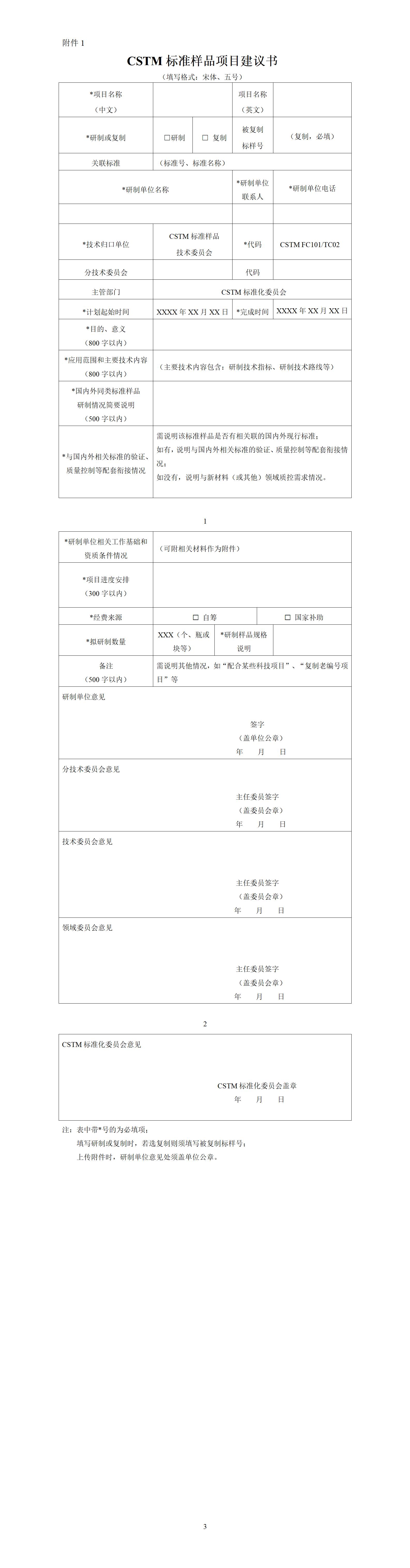 CSTM标准样品项目建议书