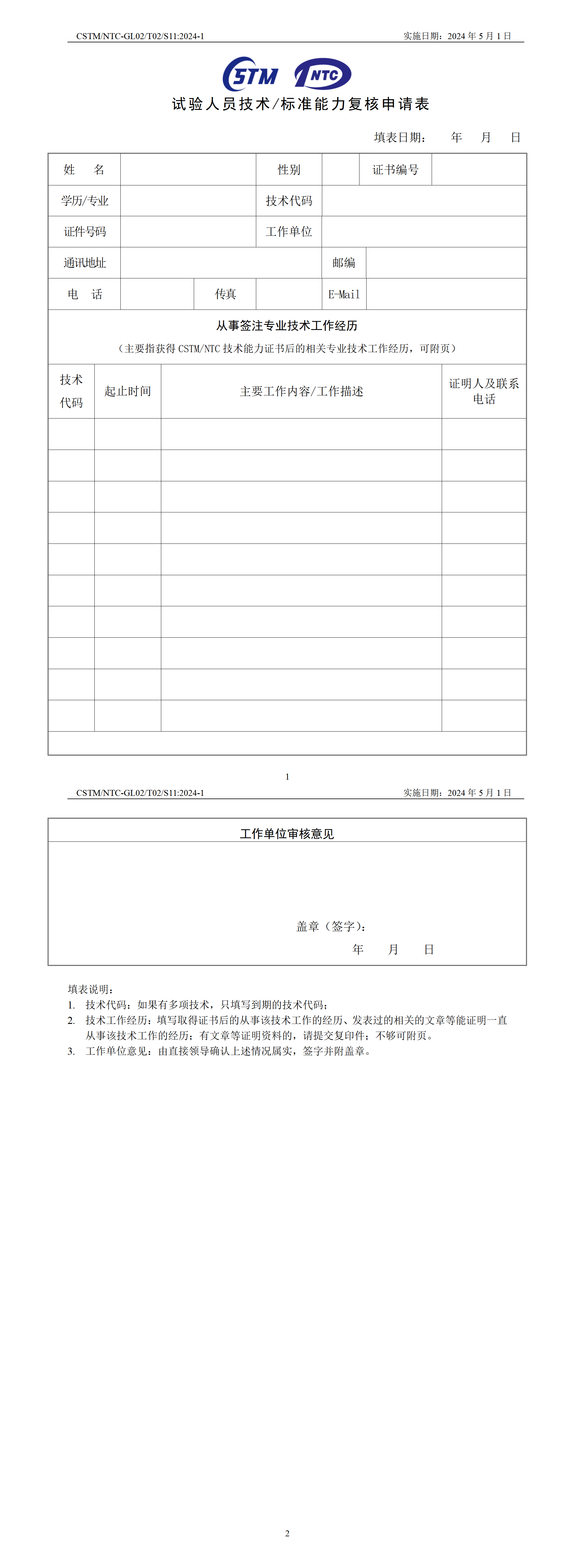 GL02_T02_S11 检测人员技术标准能力复核申请表