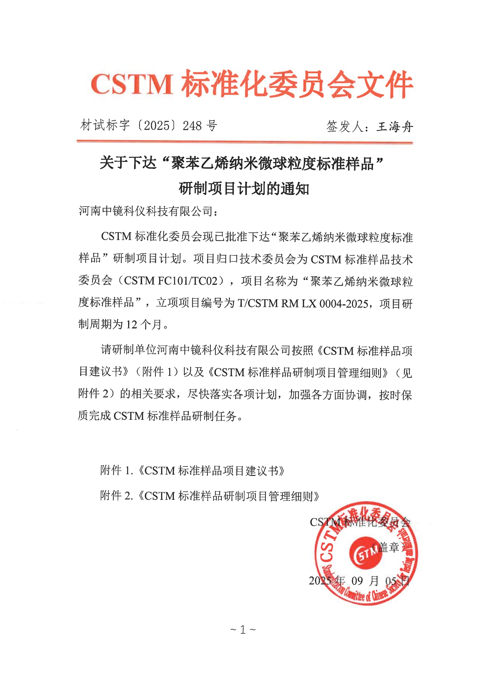 关于下达”聚苯乙烯纳米微球粒度标准样品“研制项目计划的通知