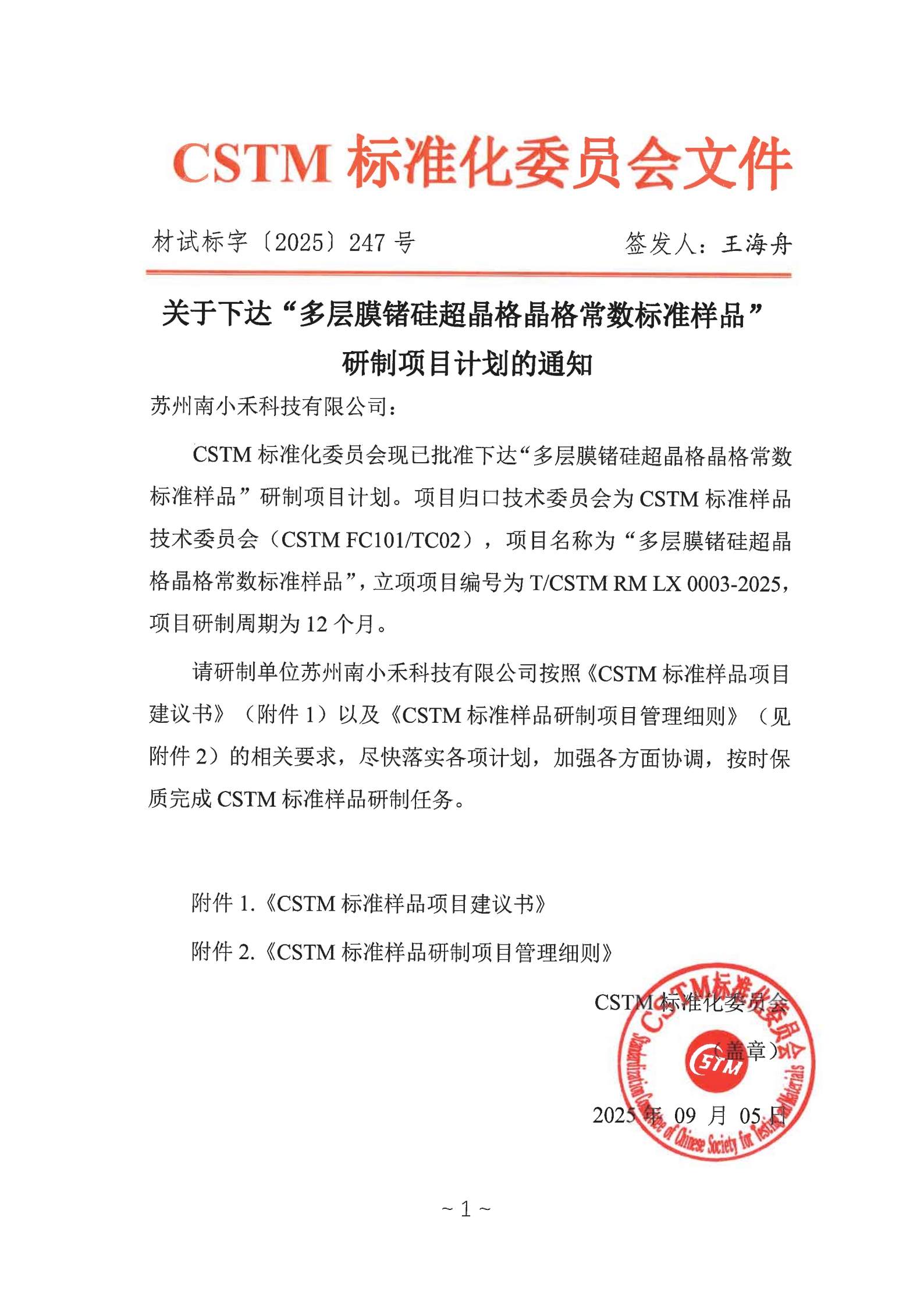 关于下达”多层膜锗硅超晶格晶格常数标准样品“研制项目计划的通知